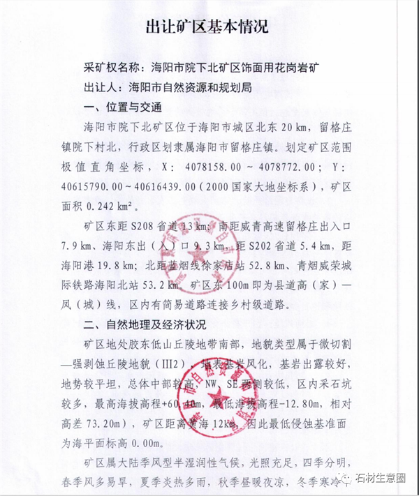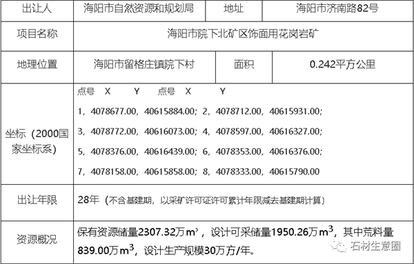 根據(jù)海陽市院下北礦區(qū)飾面用花崗巖礦投資建設(shè)項目中標(biāo)結(jié)果公示,山東新橋公司中標(biāo)該項目。