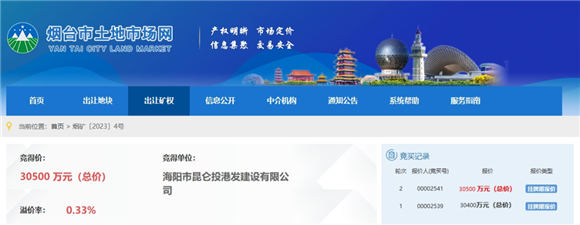 本次成功出讓的礦山資源儲(chǔ)量超1.5億噸,設(shè)計(jì)年生產(chǎn)規(guī)模990萬(wàn)噸,出讓年限13年。另外,競(jìng)得人還需在競(jìng)得礦權(quán)3年內(nèi)投資不少于25.5億,完成海陽(yáng)東港建設(shè),并通過(guò)海陽(yáng)市政府組織的聯(lián)合驗(yàn)收。