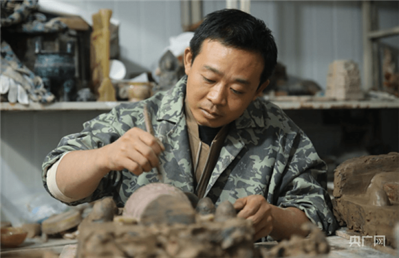 央廣網(wǎng)開封10月13日消息(記者 王勇生 通訊員 孫俊旗)10月10日,在開封市尉氏縣蔡莊鎮(zhèn)鹿村一個玉雕加工車間,村民貍超正對一塊