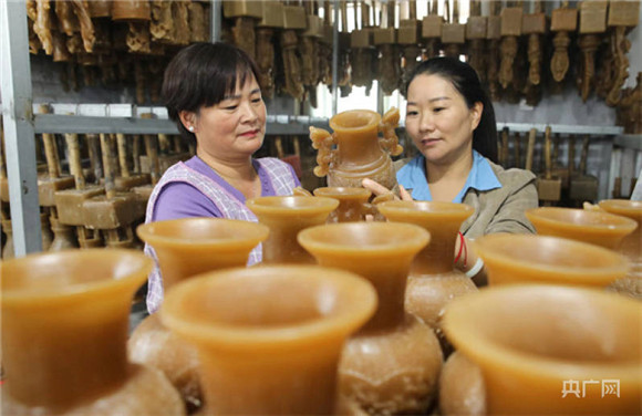 村民正在檢查玉雕質(zhì)量(央廣網(wǎng)發(fā) 李新義 攝)