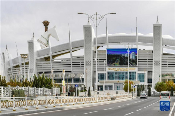 這是11月26日在土庫曼斯坦首都阿什哈巴德拍攝的奧林匹克體育場。