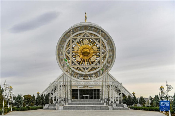 這是11月26日在土庫曼斯坦首都阿什哈巴德拍攝的國家統計委員會大樓。