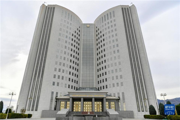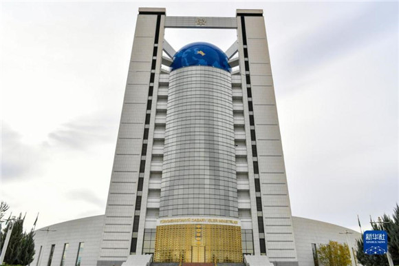 這是11月26日在土庫曼斯坦首都阿什哈巴德拍攝的外交部大樓。