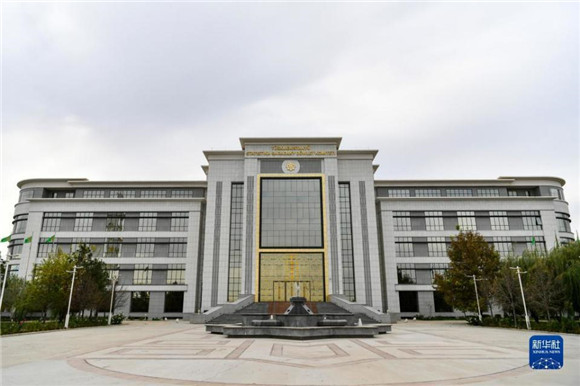 這是11月26日在土庫曼斯坦首都阿什哈巴德拍攝的教育部大樓。
