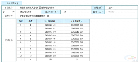 12月5日,桐城市公共資源交易中心與桐城市自然資源和規(guī)劃局聯(lián)合發(fā)布公告haianhuayang.com,掛牌出讓安徽省桐城市虎上咀礦區(qū)建筑用花崗巖礦采礦權(quán),擬出讓15年,起始價(jià)2.16億元。