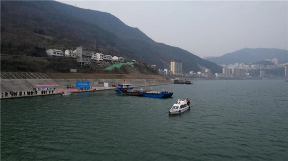 12月21日,“安康漢江復(fù)航號(hào)”船舶駛離白河縣下卡子貨運(yùn)碼頭。