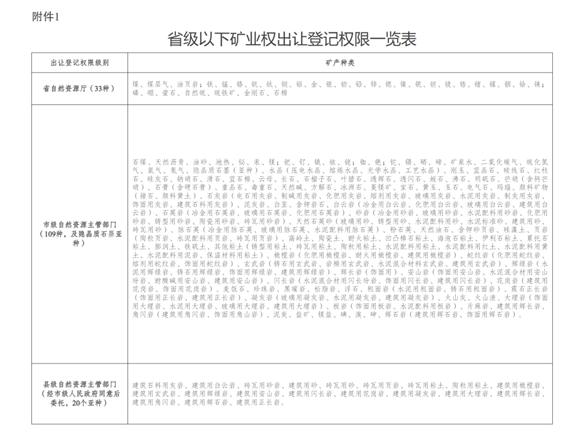 (一)礦業權依據《礦產資源法實施細則》附件《礦產資源分類細目》規定的礦產種類劃分出讓登記權限,實行同一礦種探礦權采礦權出讓登記同級管理。