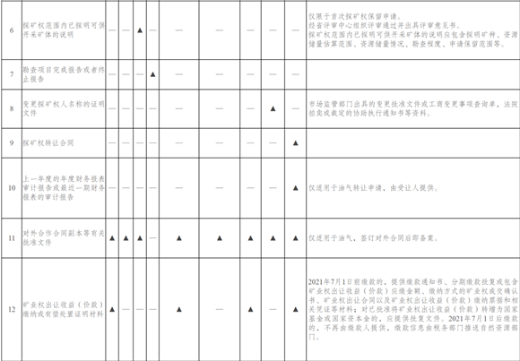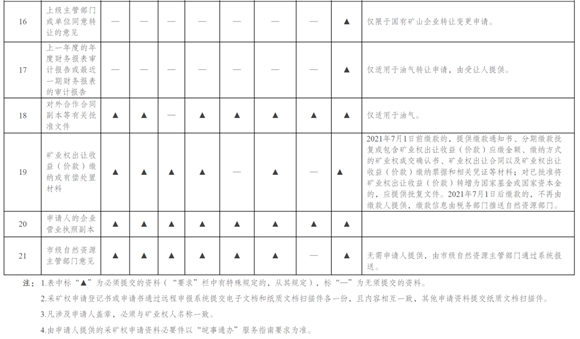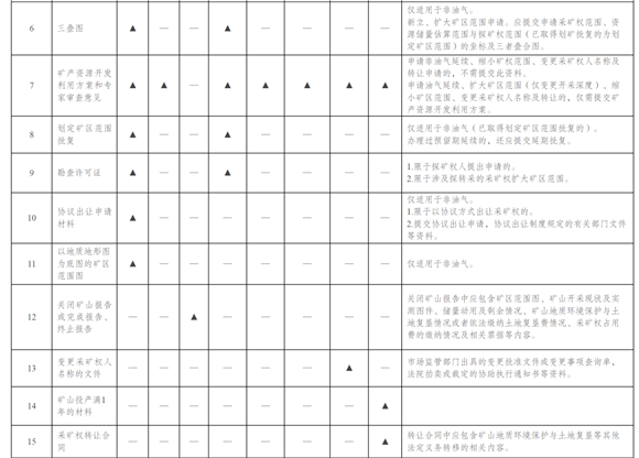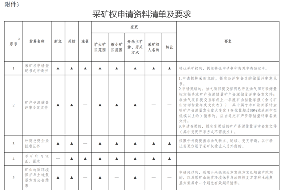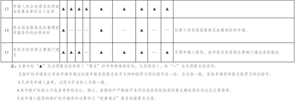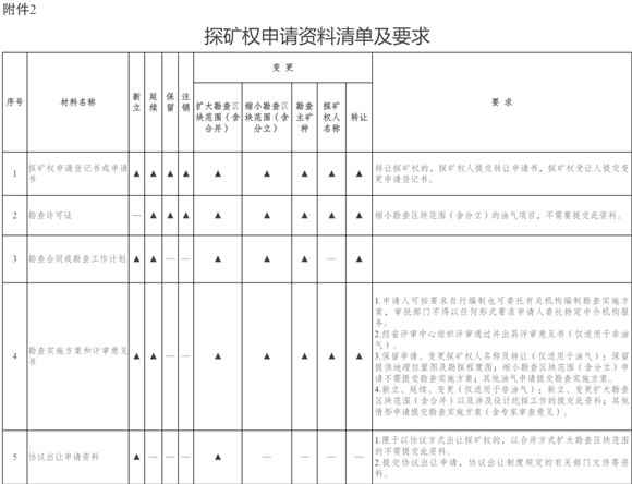 依據規范、精簡、公開的原則精簡礦業權申請資料,省級出讓登記管理的探礦權、采礦權申請資料清單及要求見附件2、3。