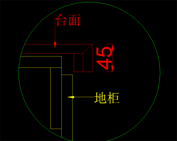 首先我們來說說臺(tái)面的正面吊沿位置。這個(gè)位置的做法一般就兩種。方式一是直接轉(zhuǎn)45度角,方式二是在吊45mm的基礎(chǔ)上,在靠外邊口的位置單獨(dú)做一個(gè)小的弧形面。方式二主要是為了避免臺(tái)面上有水的時(shí)候順著臺(tái)面低落在地面或地柜上。不過現(xiàn)在做方式一的這種造型會(huì)更加的多一點(diǎn)。